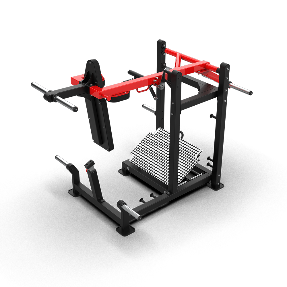 - Unique Movement: Combines elements of a squat and a 45° leg press, effectively stimulating the quadriceps and glutes without stressing the spine.